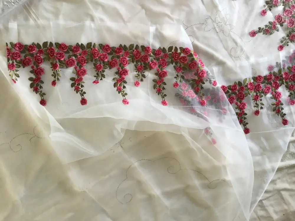 New three-dimensional organza lace rose red embroidered skirt fabric / unilateral embroidered tutu fabric