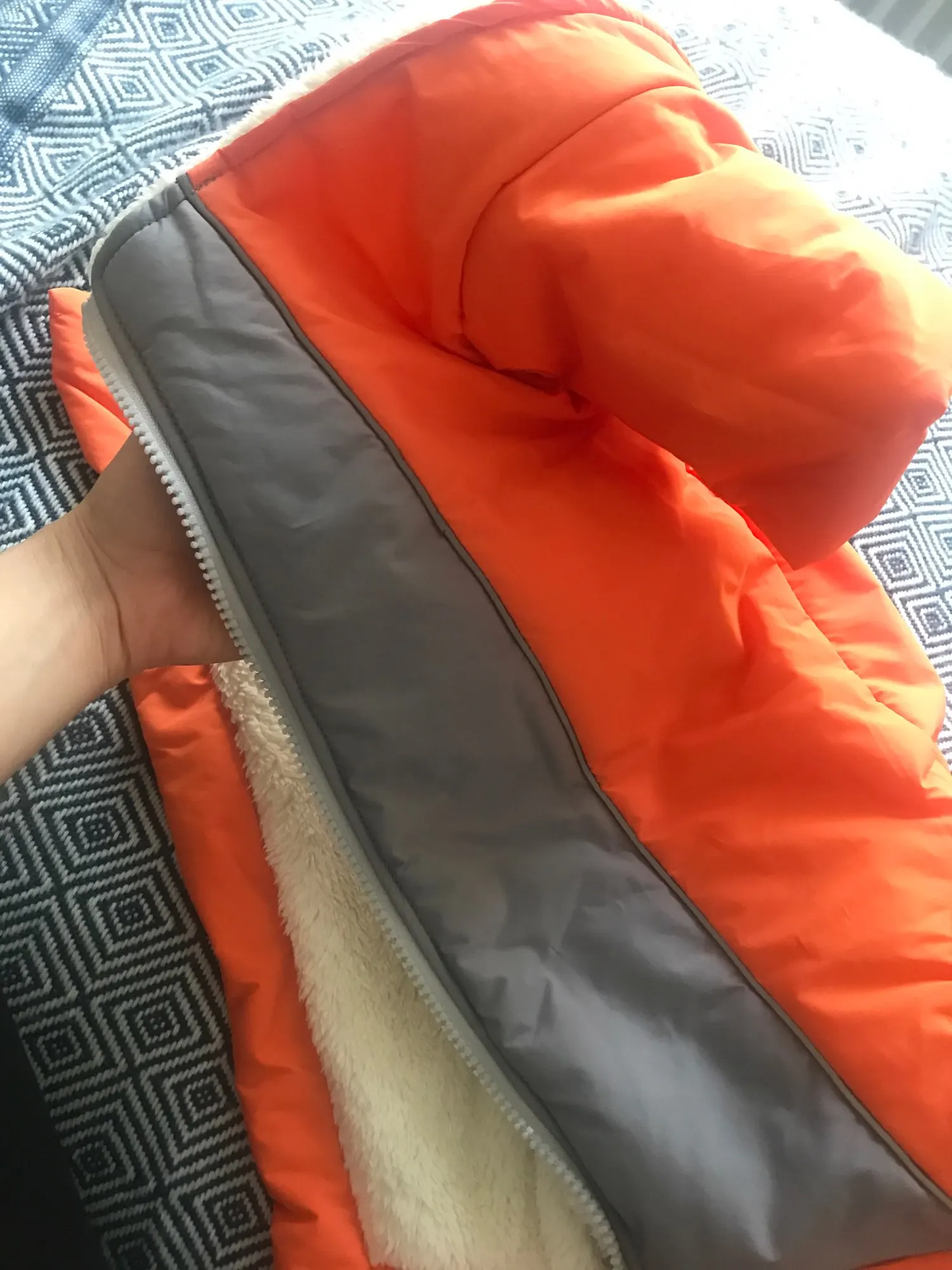 Really happy with this garment, sowing is good and my dog is warm in the Icelandic winter. Item is true to description.