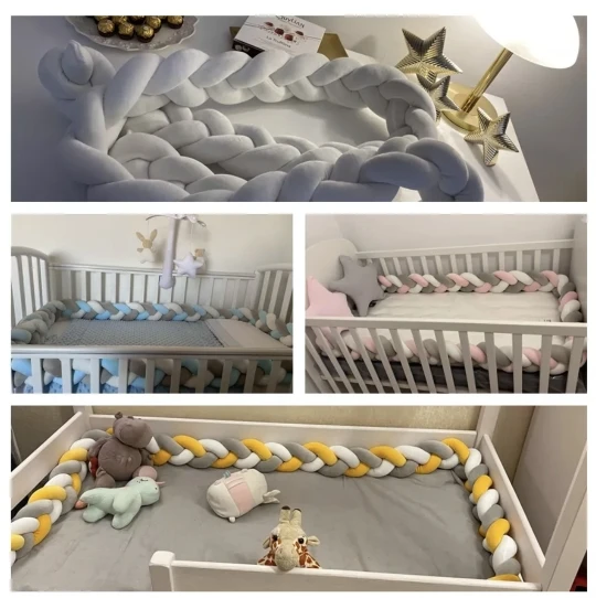 Newborn Baby Crib Bumper Cushion Knotted Braided Plush Nursery Cradle Decor Baby Nest Bed for Boys Girls Infant Cotton Baby Bed