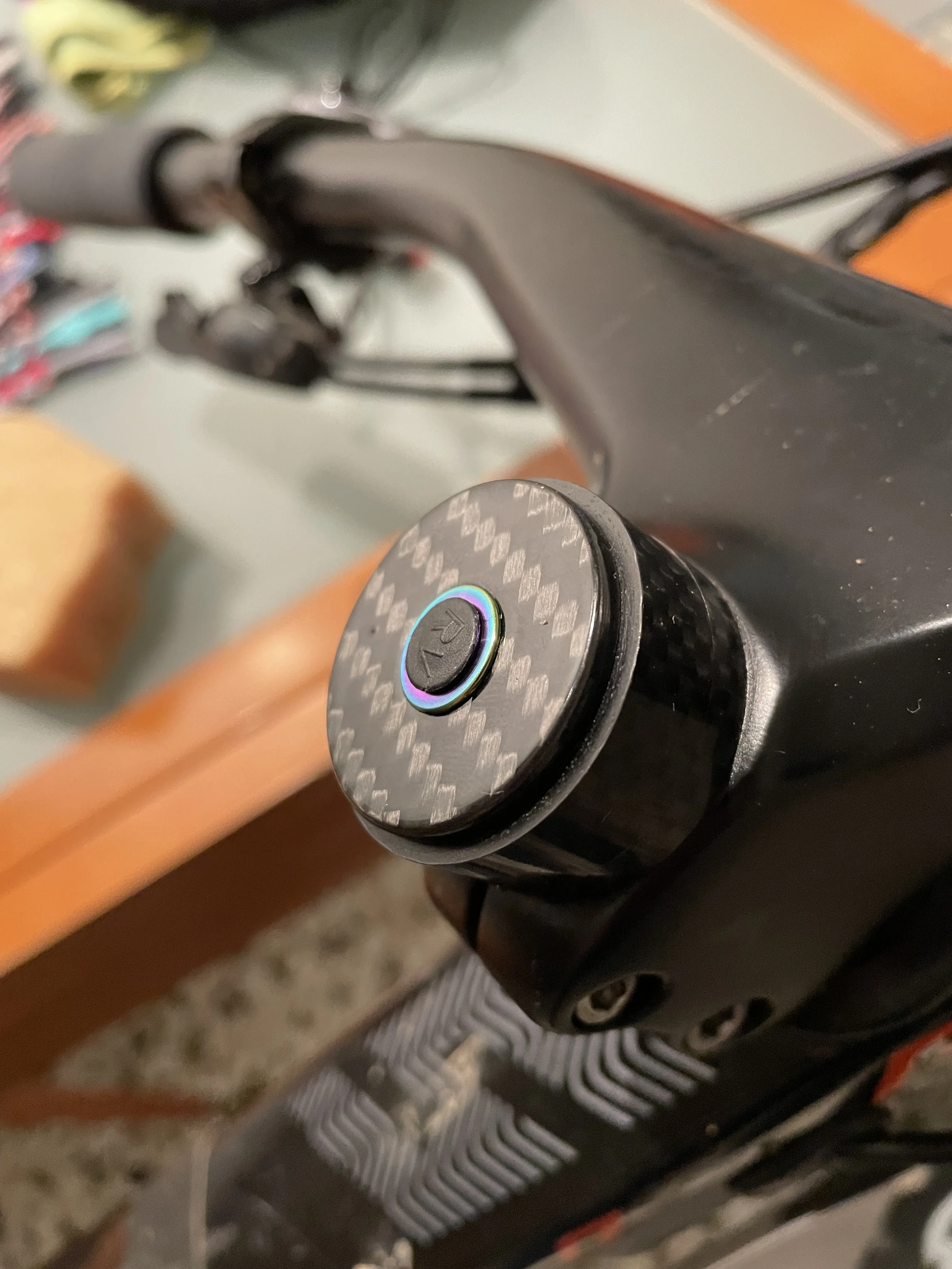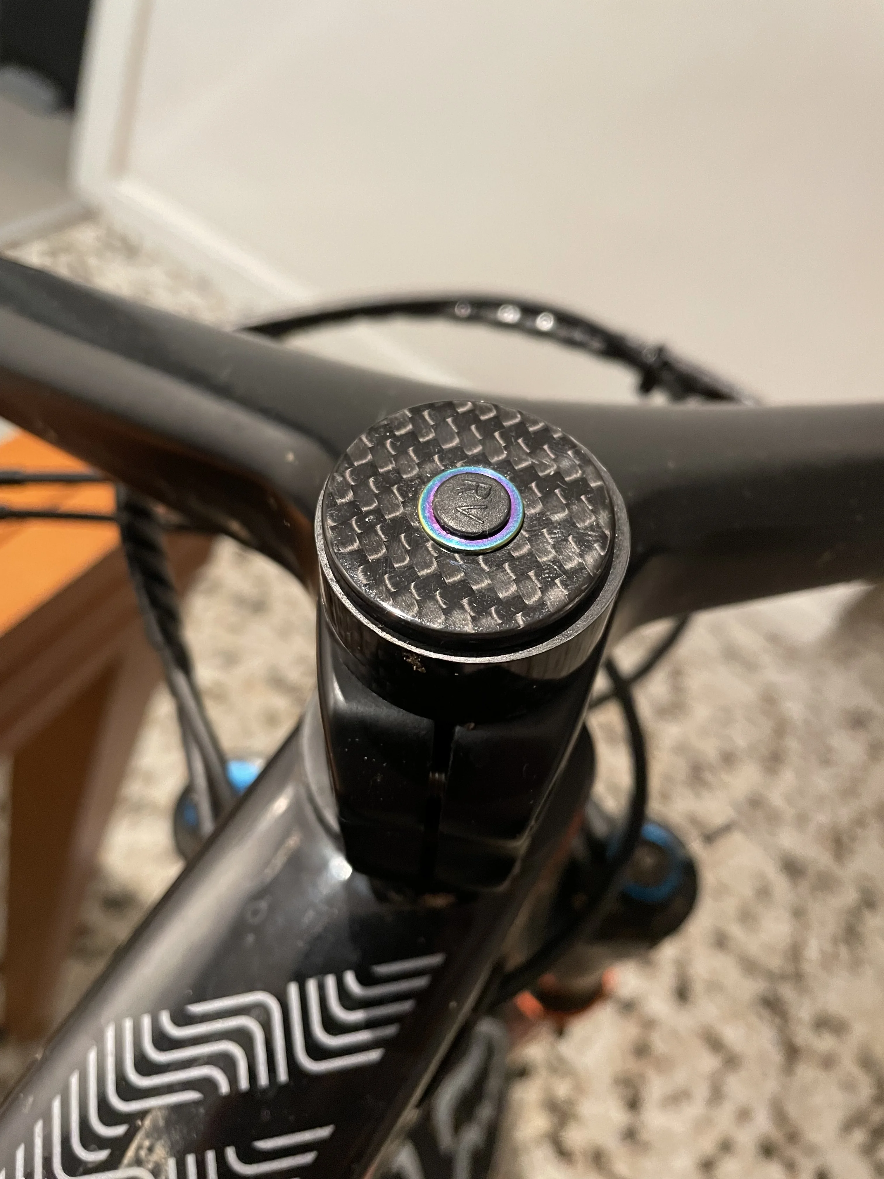 I bought one of these before with a matte finish for my run around bike but for my best bike it had to be gloss to match the other carbon kit on my bike and it looks so much better, more depth making seem almost 3D in appearance. The bolt is nice as well, very light. Just wondering what one would like with the Ti Carbon logo. Might have to get one to see. Great product. Thanks seller.