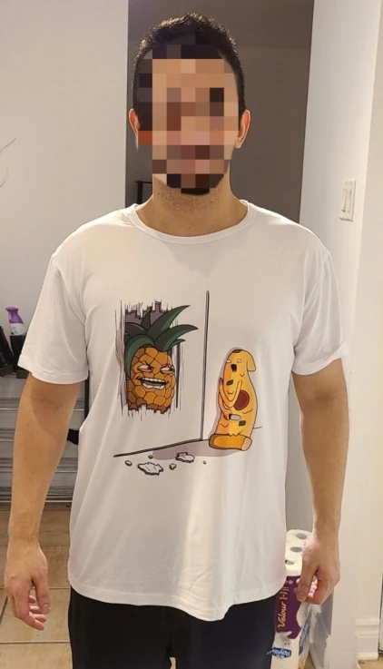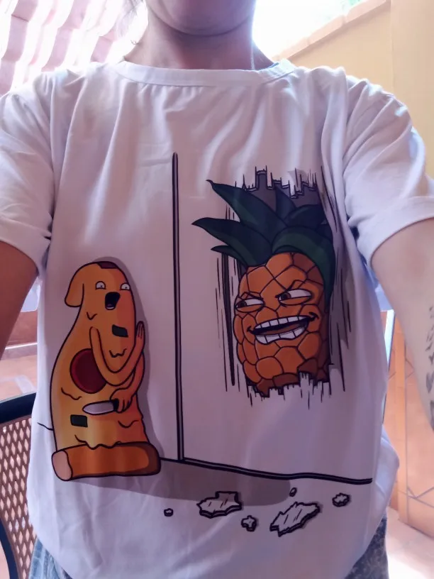 Very good condition, good quality on the print too... perfect for a fan of the shining or someone that hates pineapples!!