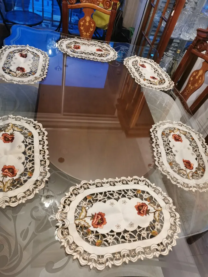 Nice embroidery table place mat pad cloth New year 2022decoration cup drink coaster Christmas placemat dining mug doily kitchen
