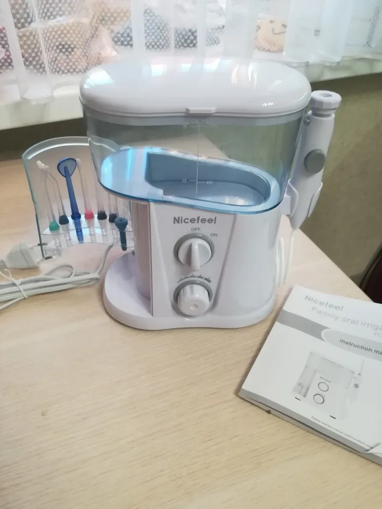 Nicefeel 1000ml Electric Oral Irrigator Teeth Cleaner Care Dental Flosser Water Flosser with Adjustable Pressure+ 7 Pcs Nozzles