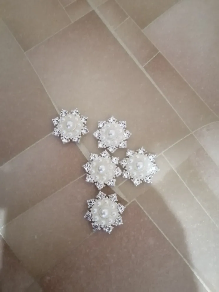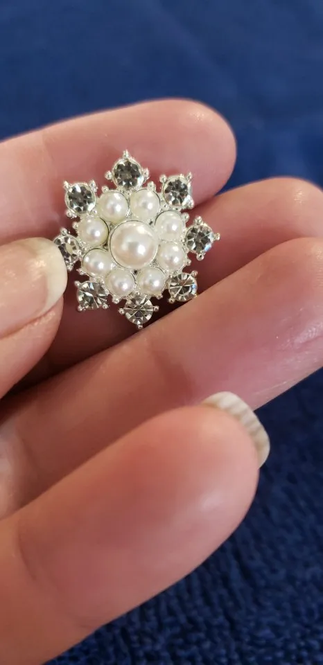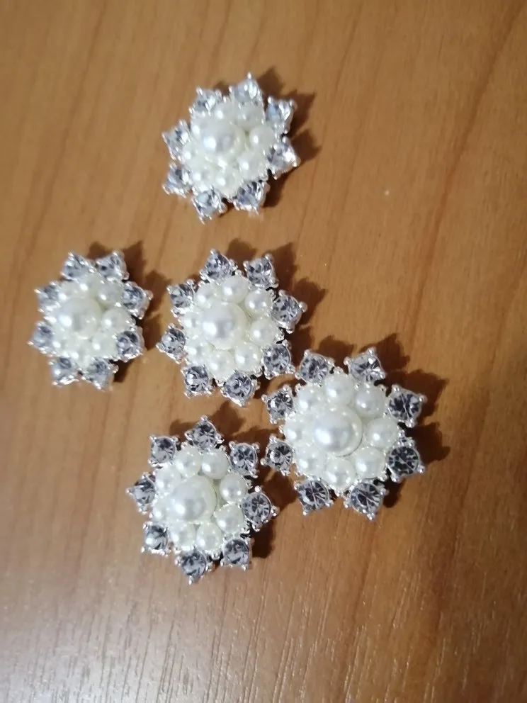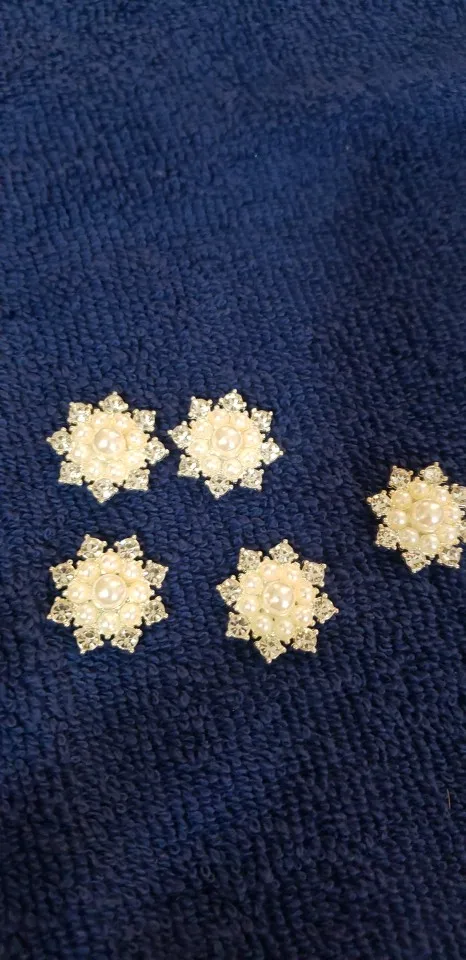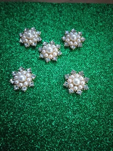 Nishine 5PCS Vintage Metal Decorative Buttons Crystal Pearl Flower Center Alloy Flat Back Rhinestone Buttons Diy Craft Supplies