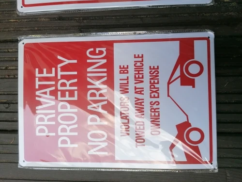 No Parking Sign, Private Property, 8" x 12" Rust Free Metal UV Printed