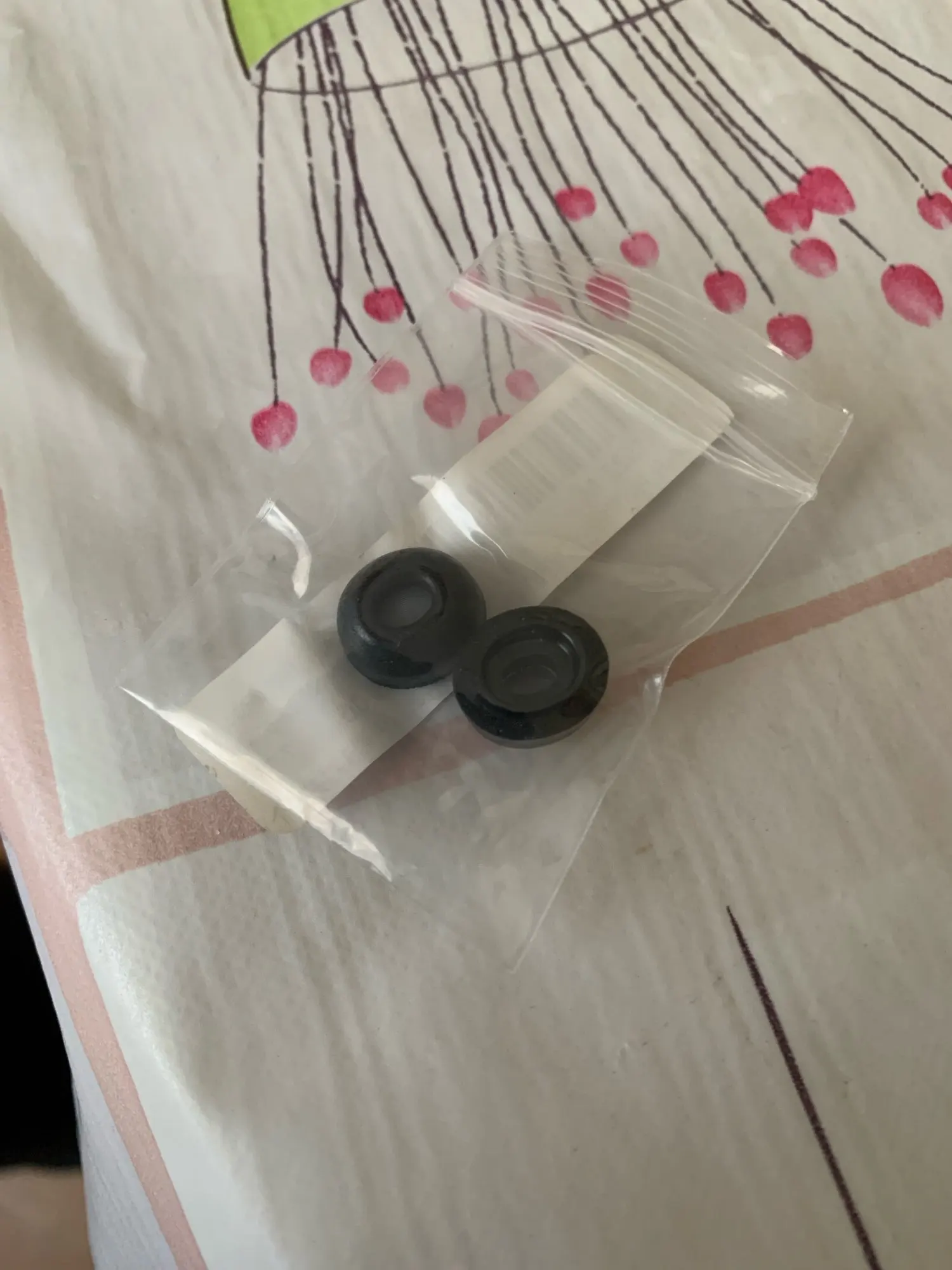 Product as described. It wasn't visible in the pics, but the ear tips actually have a small grid for ear wax protection, which is very useful. I was using the M-size on the regular ones, though for this product, beside the M, the S-size was also very good. You might get them both just in case. Arrived in about 43 days to RO.