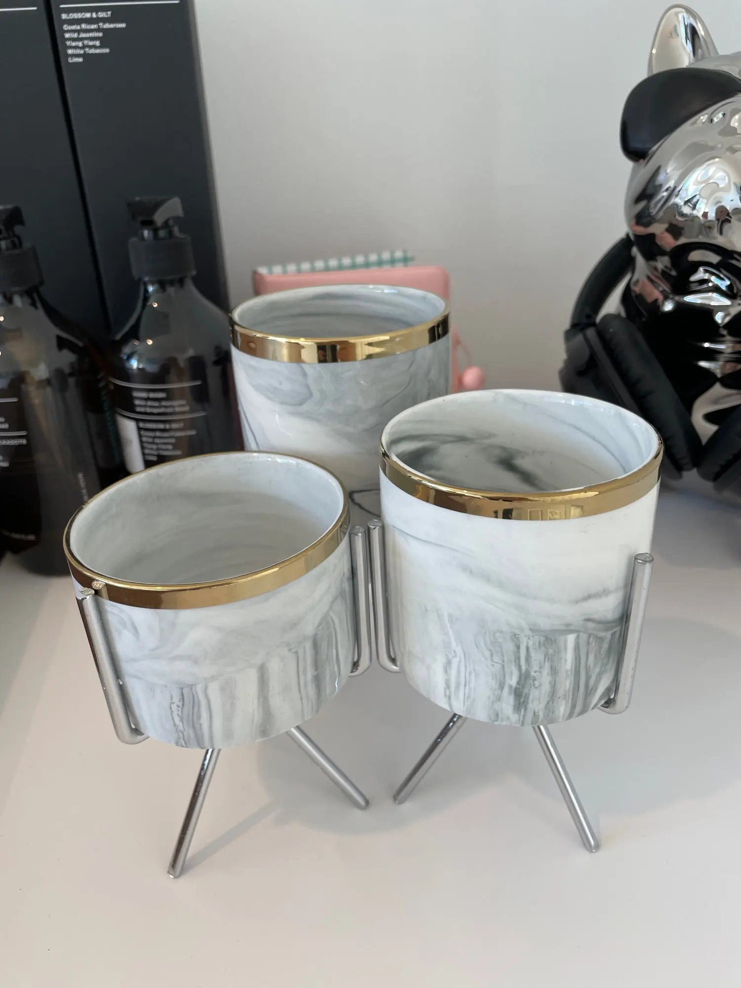 Nordic Ceramic Iron Art Vase Marble Pattern Rose Gold Silver Tabletop Green Plant Pot Home Office Vases Decorative