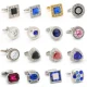 Novelty Luxury Blue white Cufflinks for Mens Brand High Quality crown Crystal gold silvery Cufflinks Shirt Cuff Links