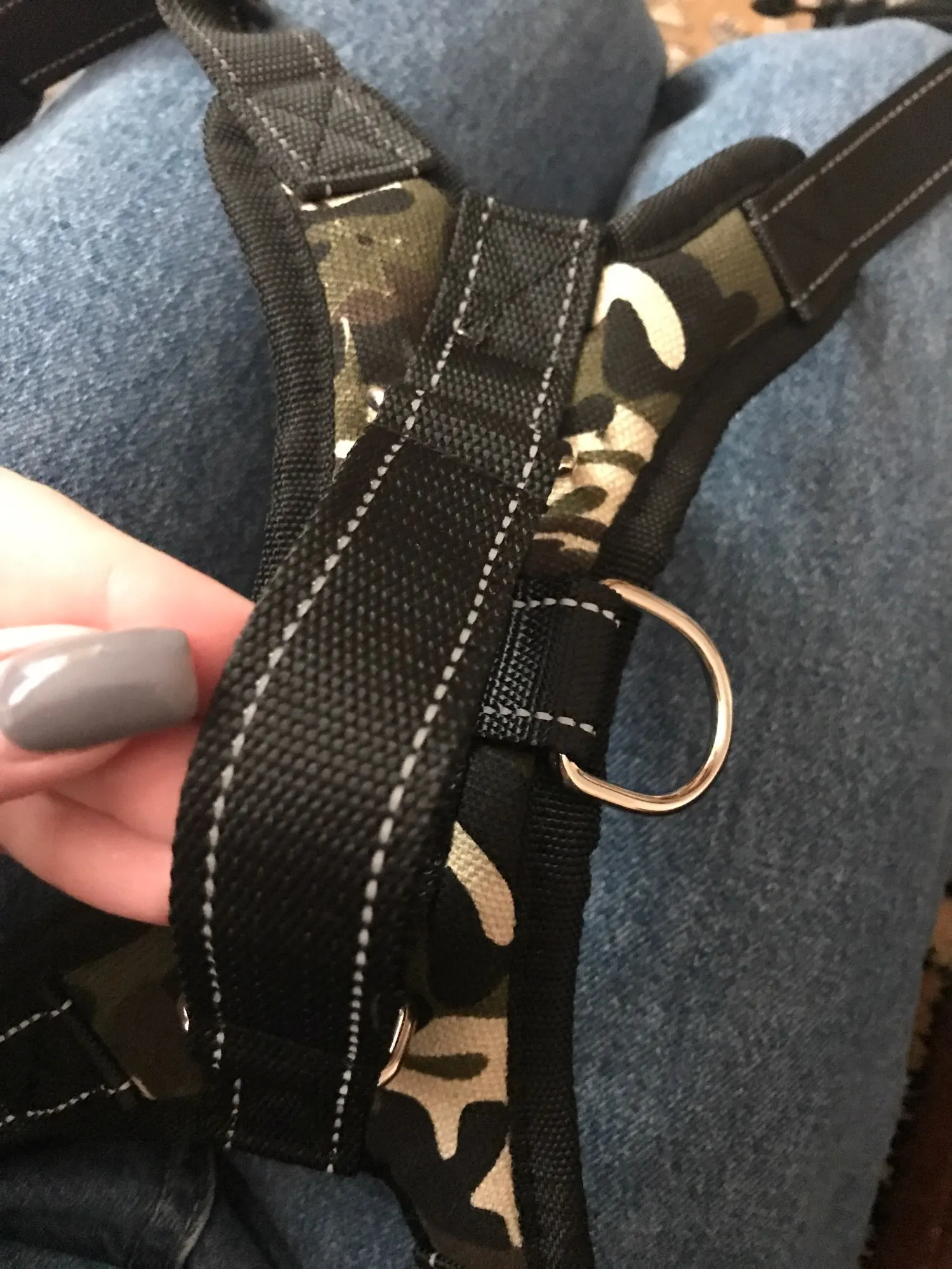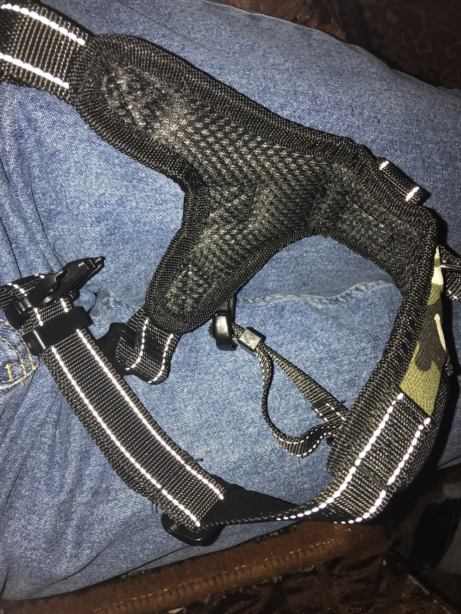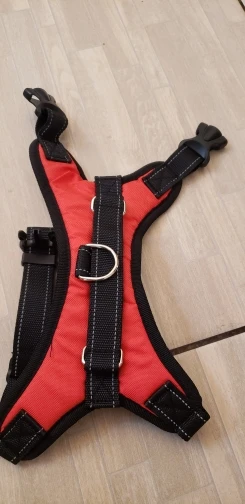 The harness is made out of poor material, even the sizes on the chart are somehow misleading. I have an 8 months old labrador, quite slim, and he does not fit in the size L. The delivery took quite long. I do not feel confident taking my dog for a walk with this harness. Seems like it would just dissolve.