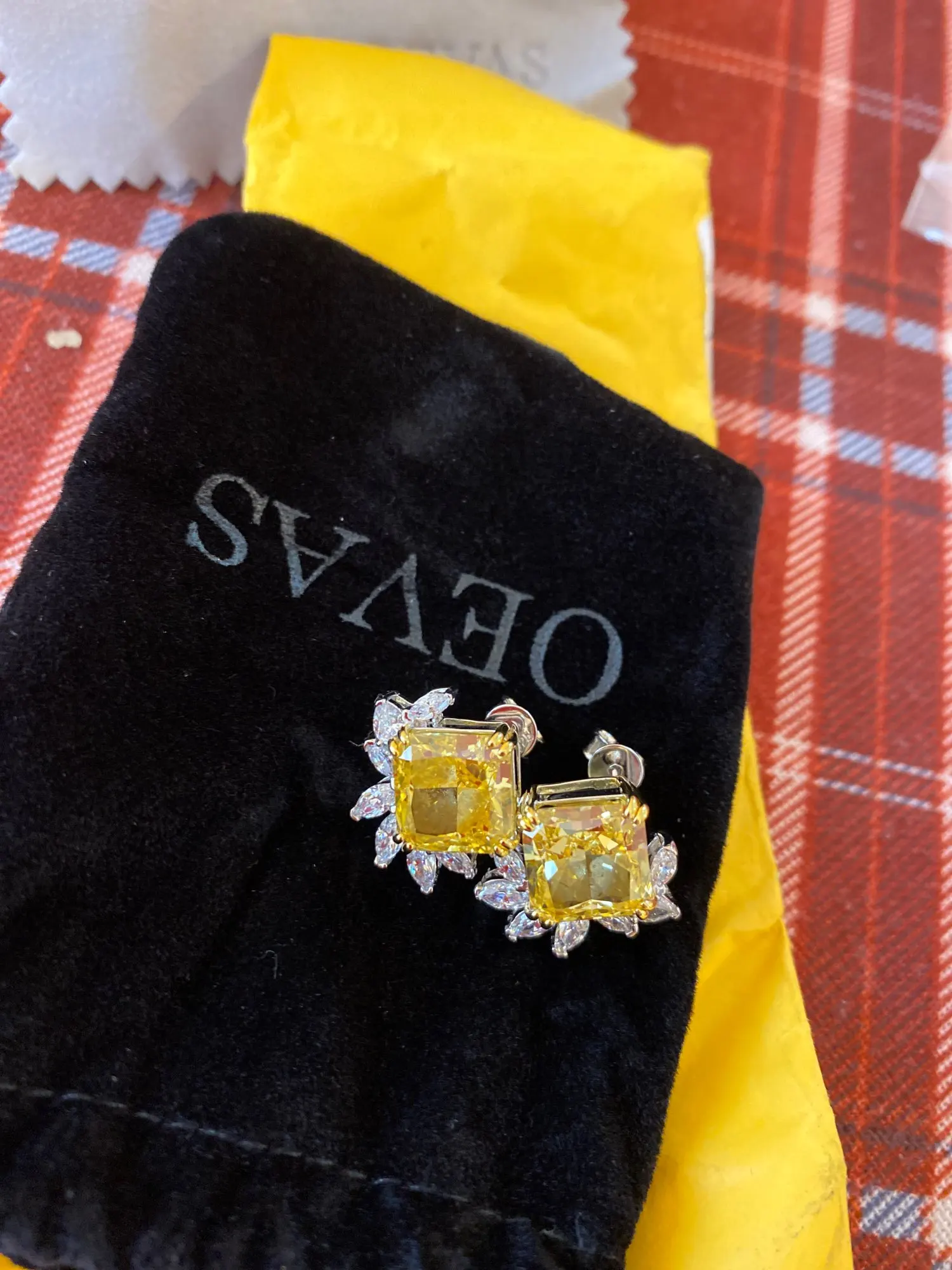 OEVAS 11 Carats Square Yellow AAAAA+ Zircon Flower Stud earrings for women Real 925 Sterling Silver Wedding party Bride jewelry