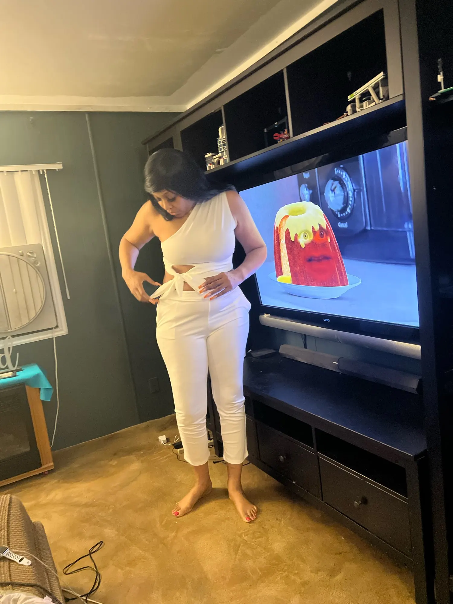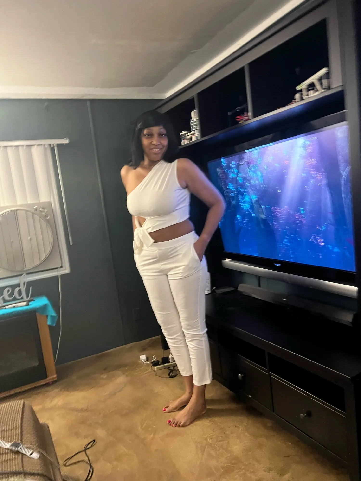 The material is good, but the stitches week and the size is biger than “s” I can wear it
