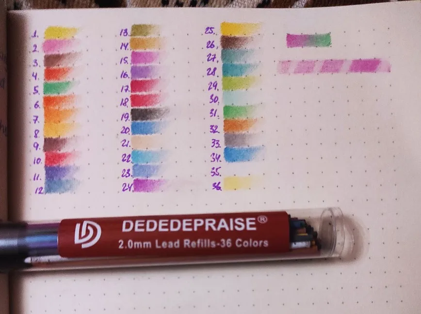 OOTDTY 36 Colors 2.0mm Mechanical Pencils Writing Drawing Pencils Refill Leads Stationery School Office Supply