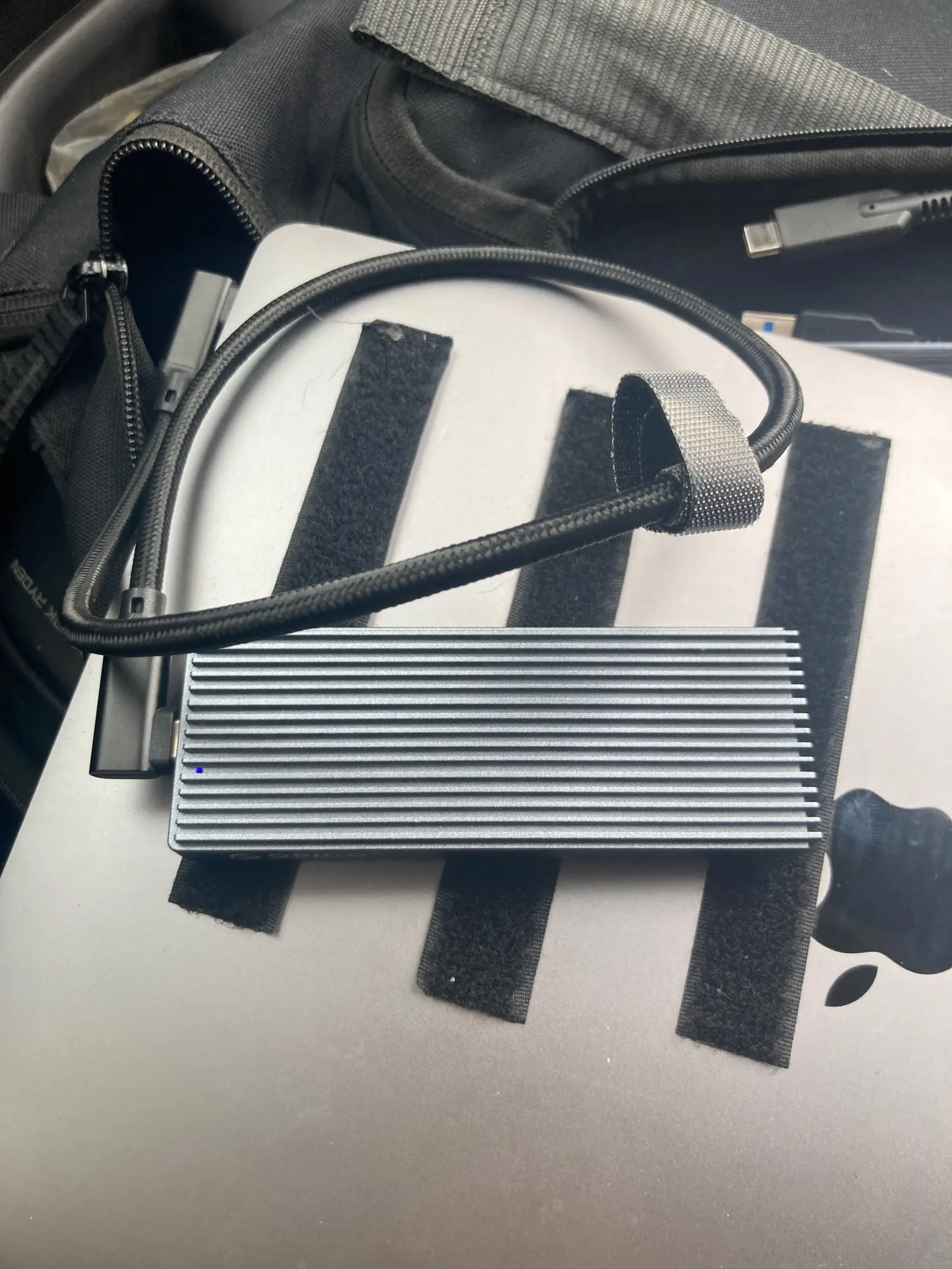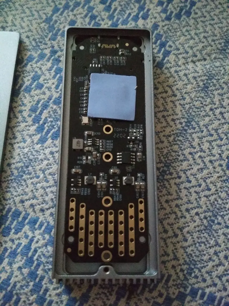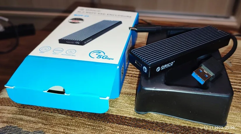 Good quality. Plastic enclosure with metal upper part, OK for heating. Delivered with thermal pad for SSD, screwdriver and USB cable.