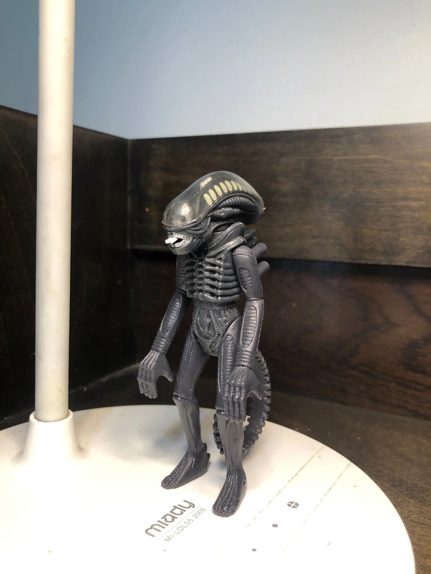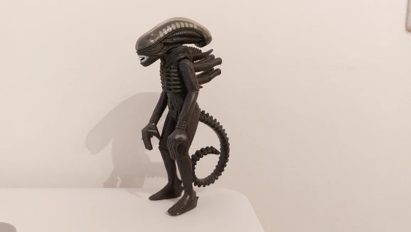 Fun little alien. The clear plastic head part comes off and there is a slide for the second mouth but it doesn't move very far.
