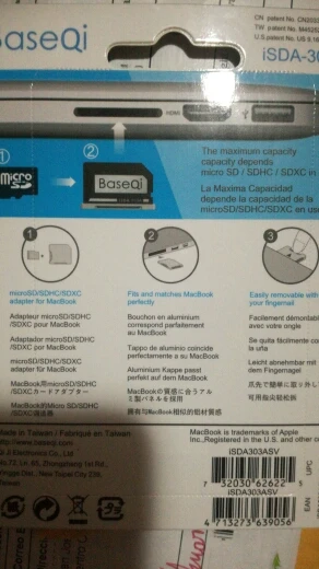Original BASEQI Aluminum MiniDrive Micro SD Card Reader For Macbook Pro Retina 13'' Model 303A Memory Card Adapter
