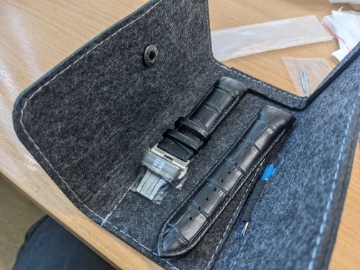 The strap looks great, high quality, made in genuine leather. It doesn't look cheap or anything. It came with a case containing the strap and a little tool to help remove strap pins and putting back into place. I'm very pleased with this product!!! totally recommend this seller!!! 5 stars!!!! *****