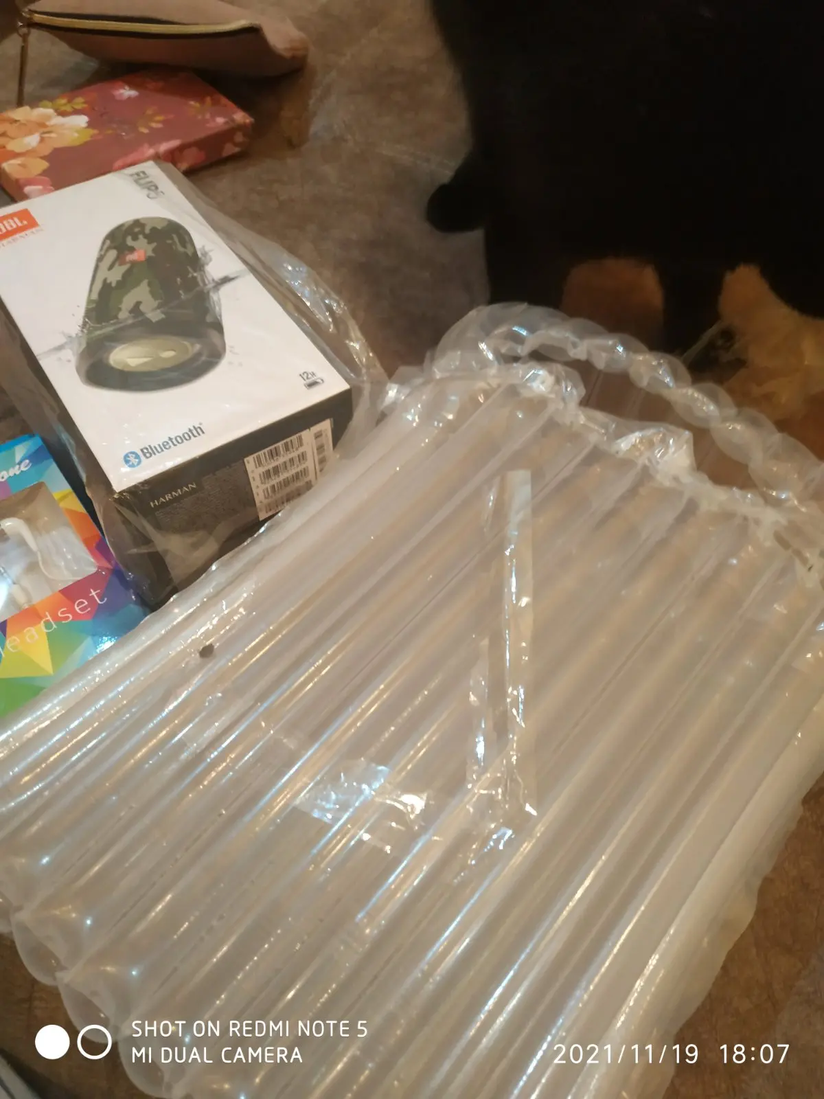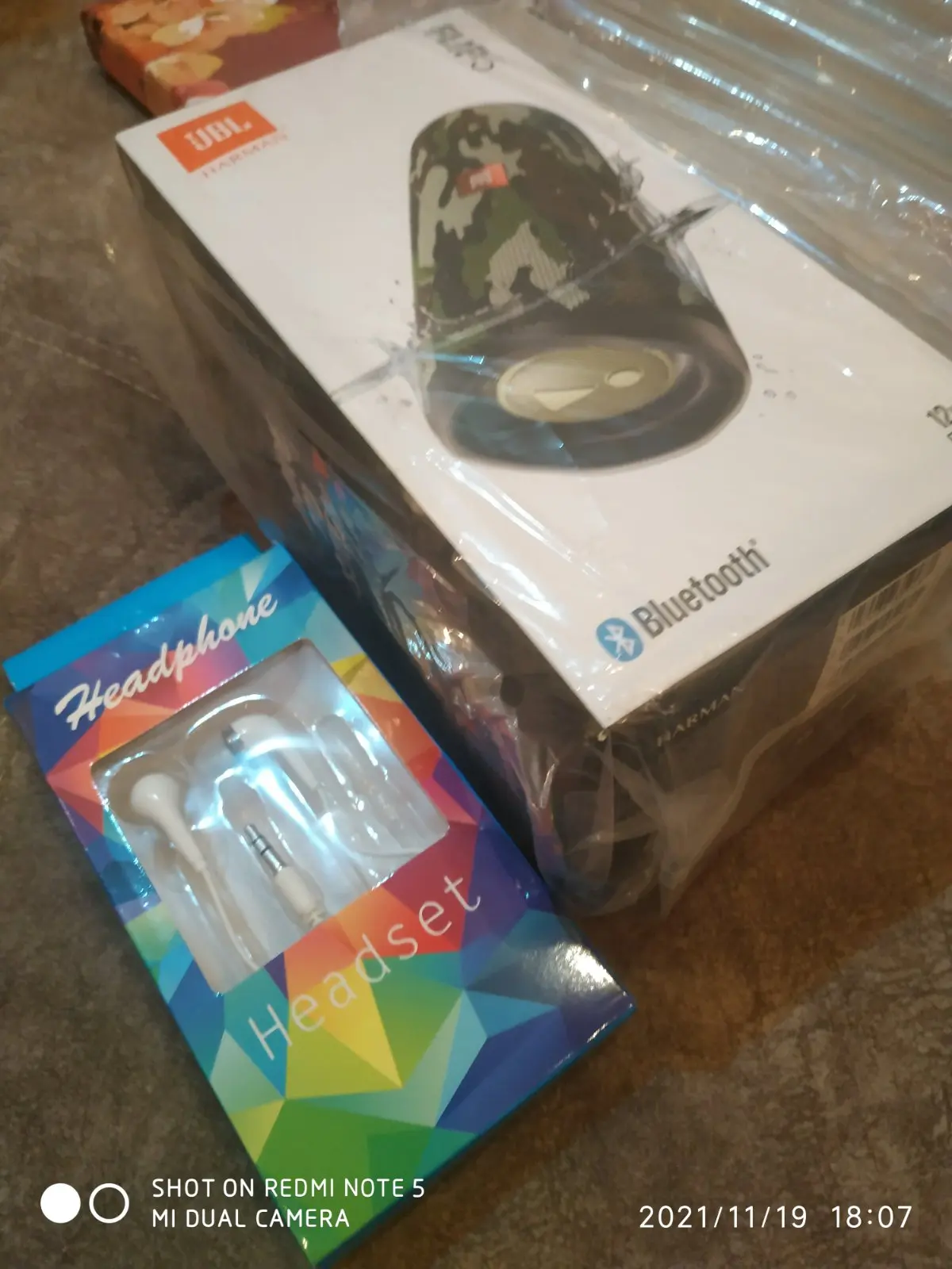 I placed the order in nov-12 and received the product in nov-28. The box was severely damaged but seems it didn't affect the product. It came with a in- ear headphone as a gift.