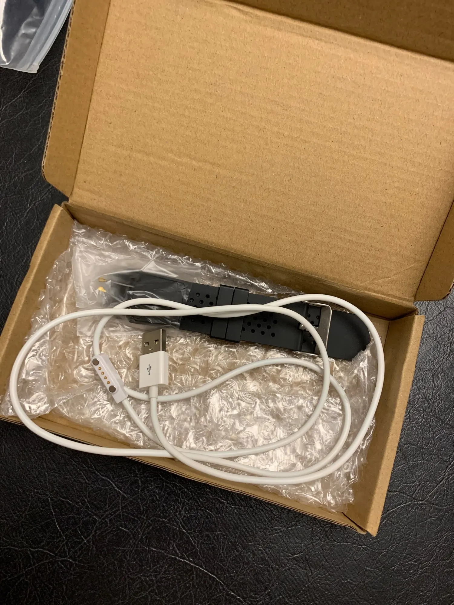 I ordered strap with one cable, KW88; the kit I received does NOT contains charging cable