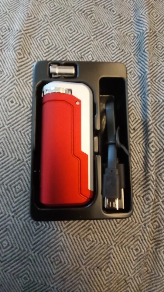 Picture shows a dull matte silver buttons... But it is really shiny and glossy looking... Not what I was expecting... Also the button to slide the cartridge up/down is very sticky and take a lot of effort to move up or down... I've had one of these before and was not like this? This looks real and branding packing looks real... But these 2 little things makes me think it's a fake... A really good fake... But as long as it smokes its will be ok as it's half the price.
