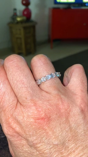The ring is beautiful and sturdy, the rocks are well placed and don’t move. The size is too big for me, I measured for size 8 as in the instructions, but the ring came way too big. Should have gotten a size 6.