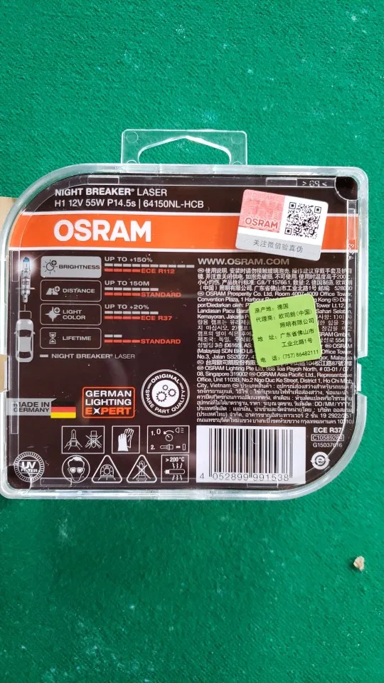 OSRAM H1 Night Breaker Laser Next Generation Headlight Car Headlight Auto Fog Lamps 12V 55W 3700K 64150NL (2 Pieces)