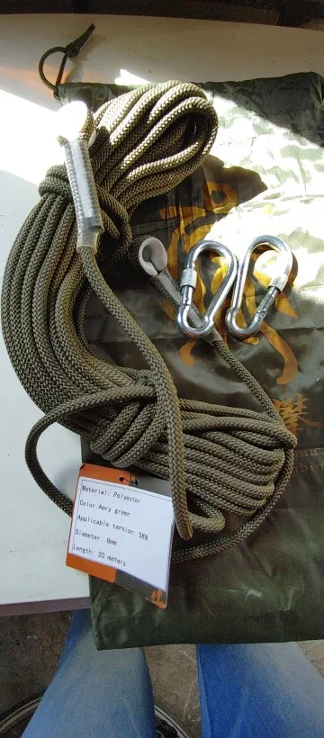 Outdoor Hiking Accessories Climbing Cord 10-50m Diameter 8mm tension 8KN High Strength Paracord Safety Rope with 2pcs Buckle