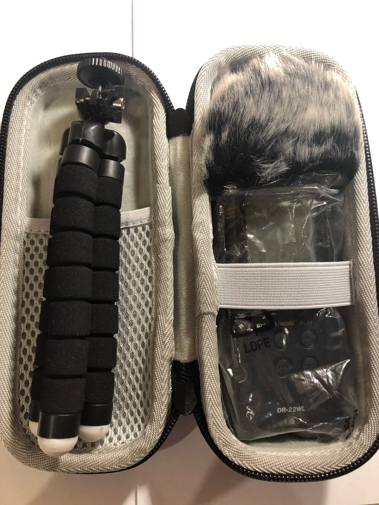 Excellent stuff - the tripod fits neatly, the muff is cute and does its job. Also, tripod cancels most irritating noises the plastic body makes when holding and recording with the DR22.