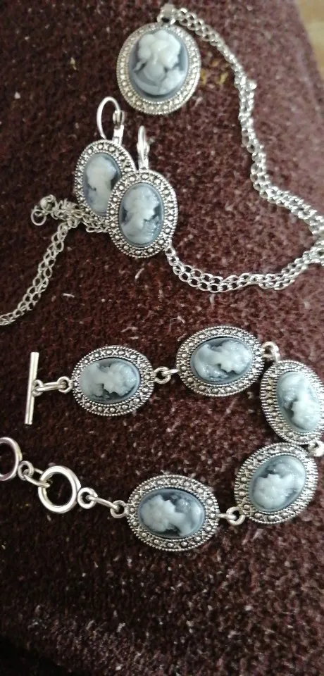 Oval Lady Queen Cameo Jewelry Set Antique Silver Plated Necklace Earrings Bracelet Fashion Jewelry TS419