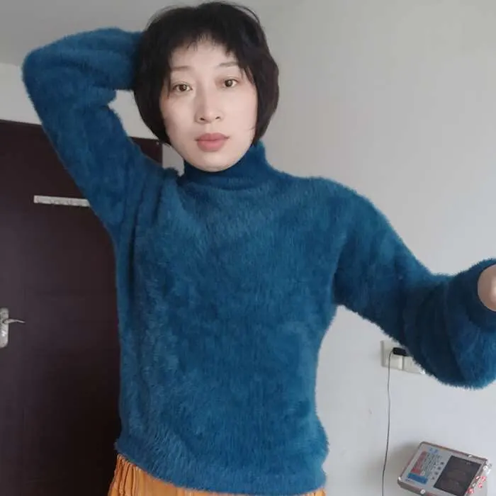 Oversized Cropped Sweater Turtleneck Women Winter Clothes Knitted Fluffy Woman Sweaters Korean Pullover Vintage Jumper 2022 Pink