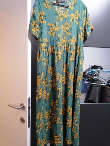 Nice summery dress. Fabric very light. Nice pattern. Thank you.