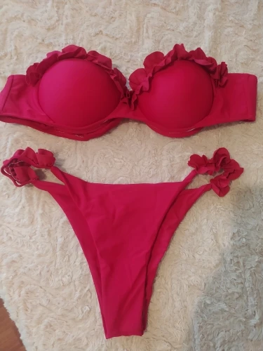 Padded Push Up Bikini Set Underwire Flower Ruffles Swimsuit For Women Sexy Solid Bandeau Female Bathing Suit 2022 Summer Biquini