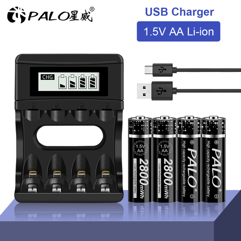 PALO new AA Battery Lithium 2800 MAH 1.5 V aa rechargeable battery for Battery Remote Control Toy Battery Light Batteries