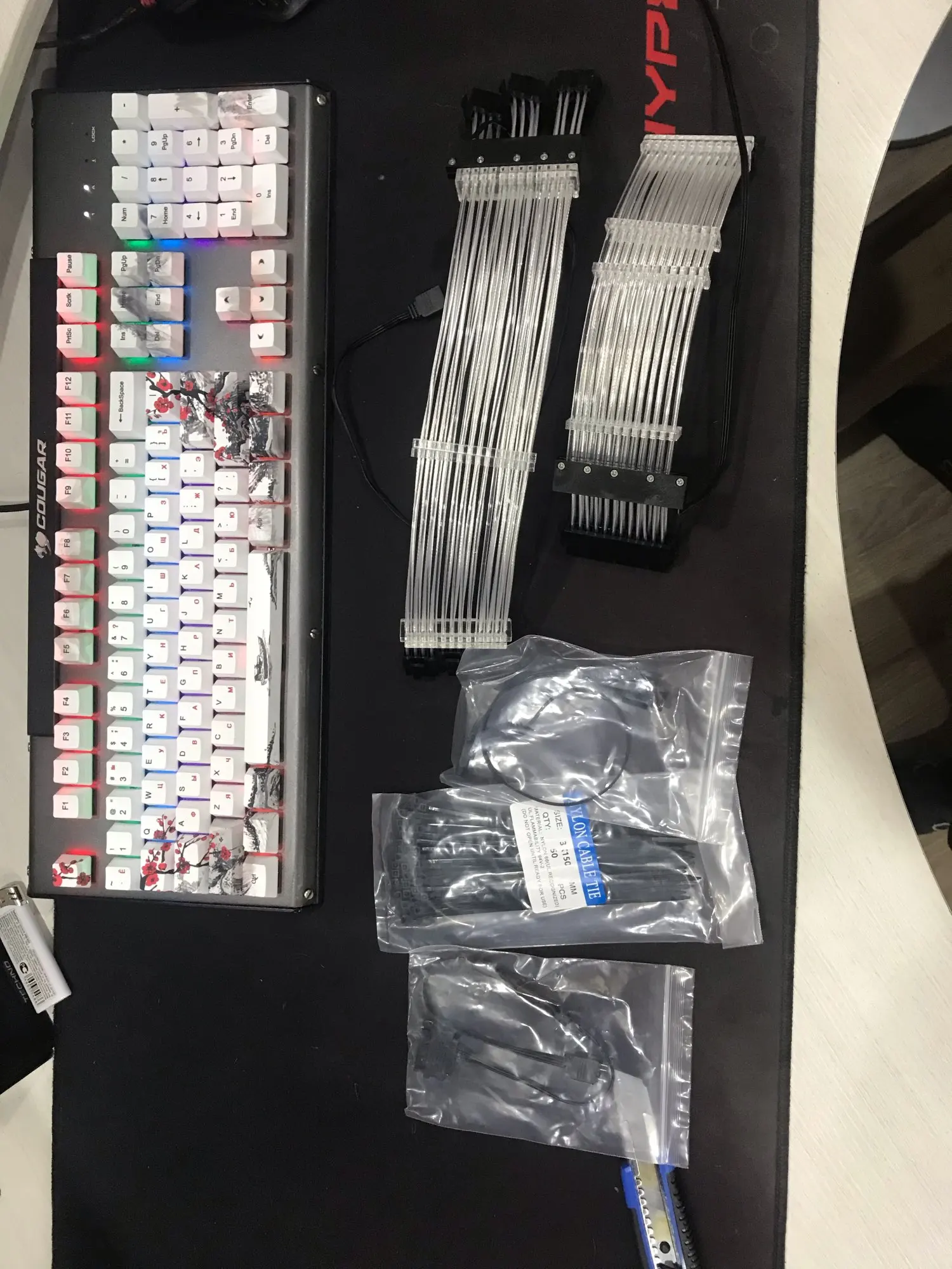 PC Case PSU Extension RGB Cable, ATX 24Pin + PCI-E GPU 8PinX2 8PinX3, Neon Line ARGB Streamer Adapter, M/B 5V 3Pin SYNC