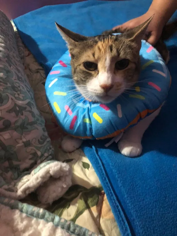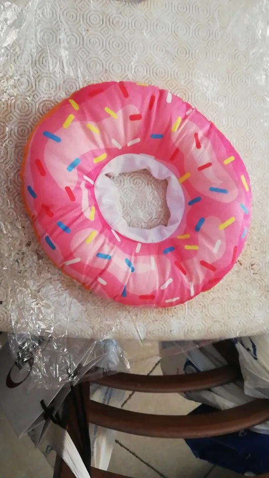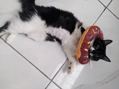 Adorable, and much better than the traditional plastic cone. My only issue is that the cord lock doesn't hold well enough, so the cat can get the collar off - I had to go to the fabric store to buy a better quality lock. Seller has very fast delivery - thank you.