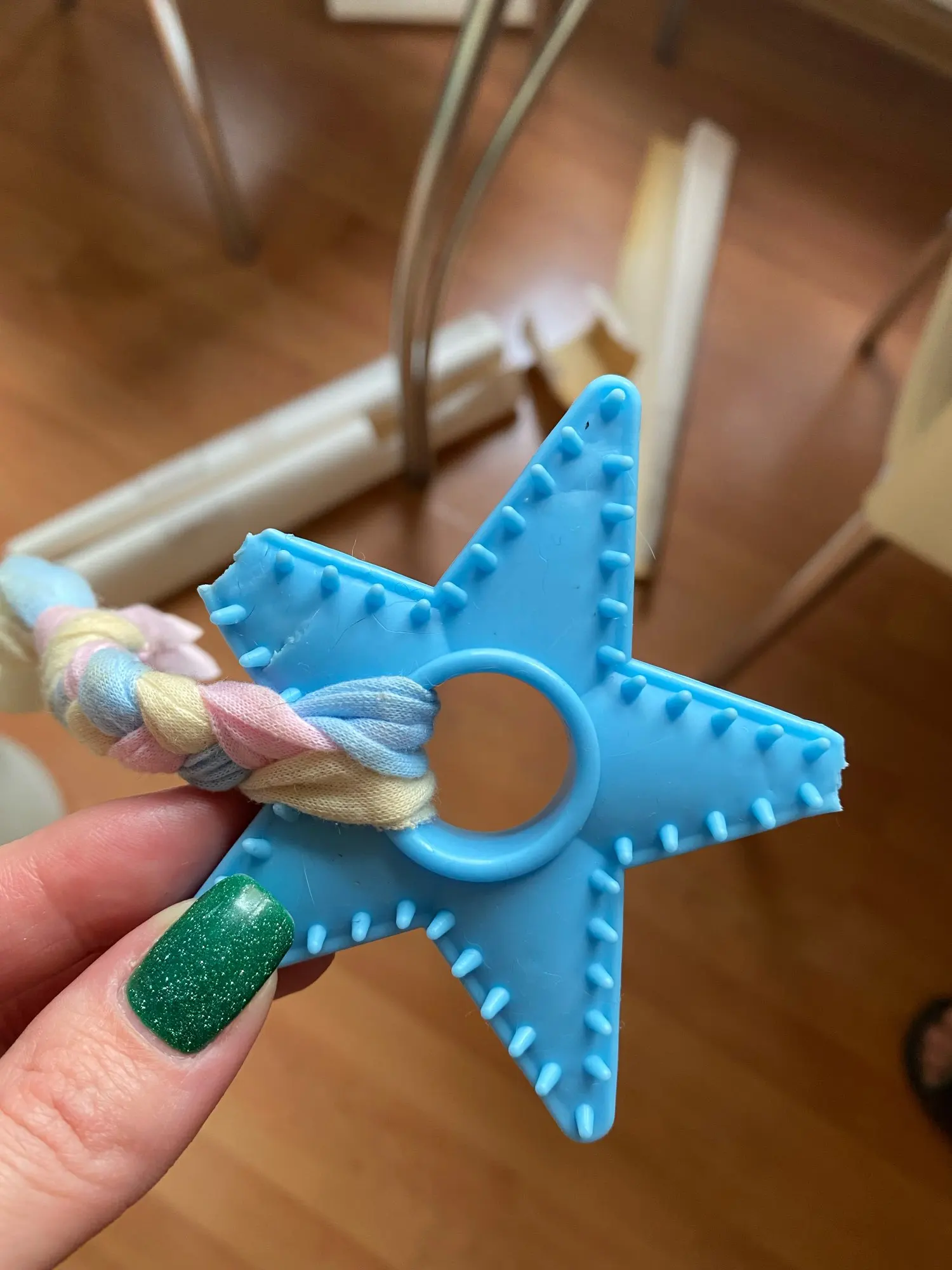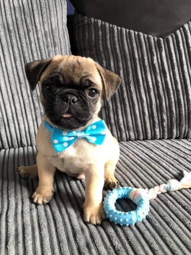 I wish they had a measurement table or some other thing to give a perspective of the toy's size. It does really looked what it shows in the picture, but I have a 3 months old puppy and he could swallow this toy because it's so small for him. I liked the product but it's not meant for bigger dogs.