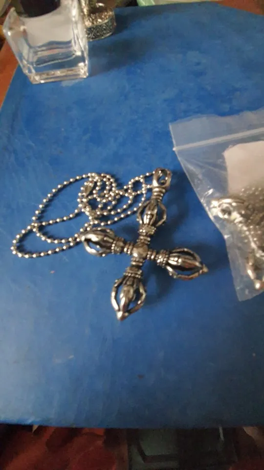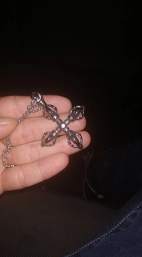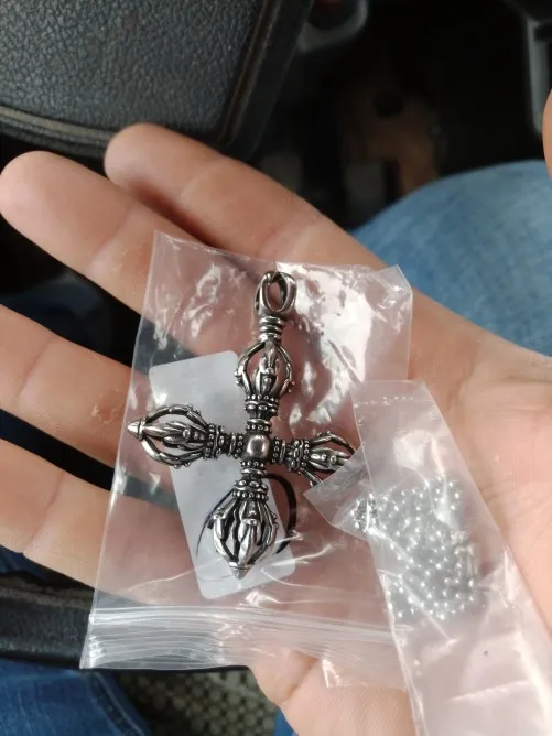 Phenovo Charm Stainless Steel Hollow Cross Vajra Pestle Pendant Talisman Necklace Prayer Amulet Pendant Necklace Fashion Jewelry