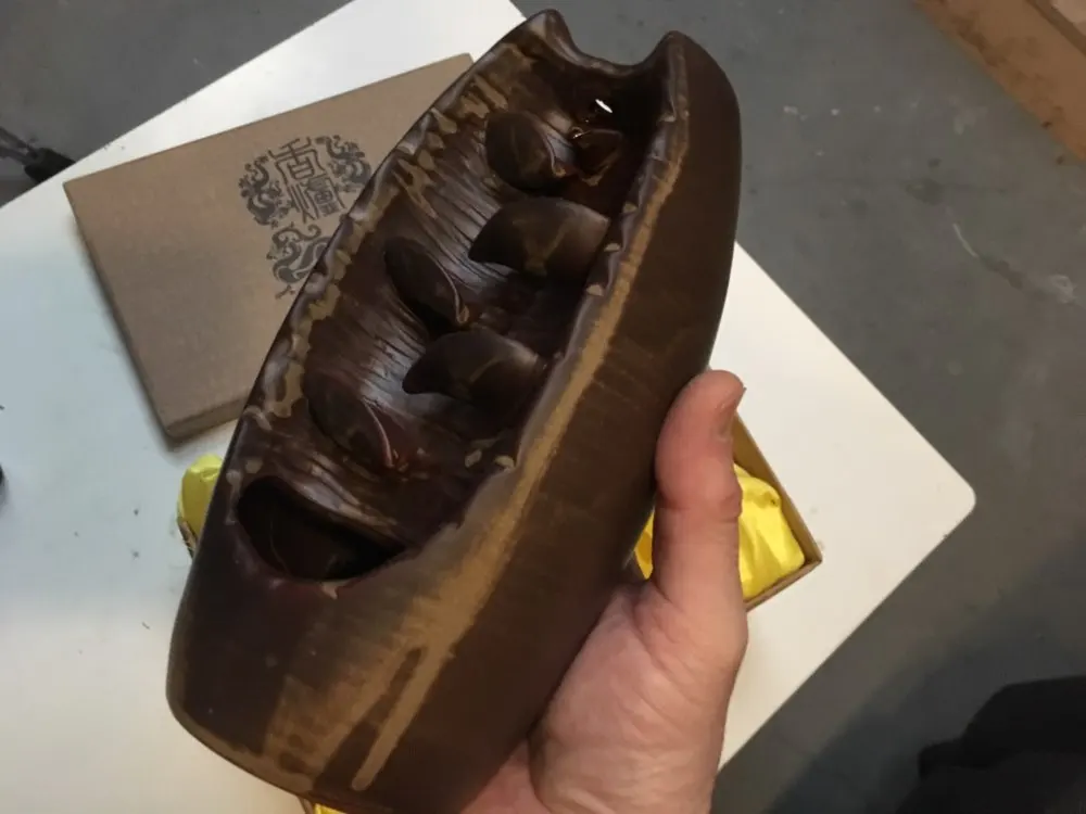 Item arrived safely. Well packed. comes with nice gift-box. Color or finnish less beautiful than on the photo in the add. That’s why I give 4 stars. Good communication with the seller.