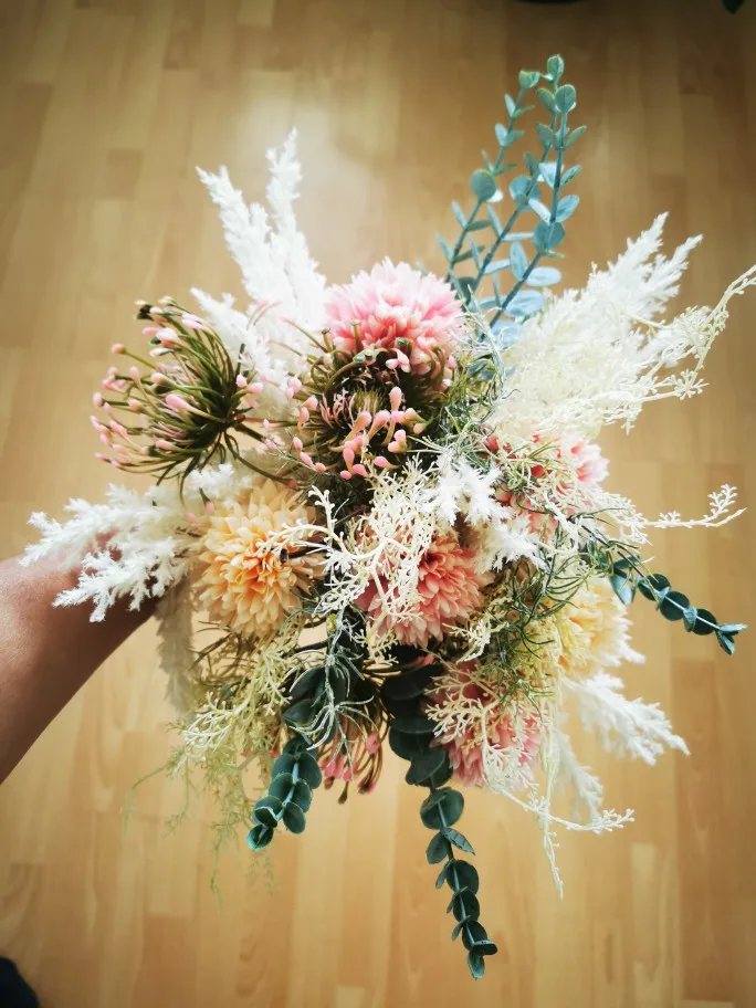 Plastic Leucospermum Artificial Flowers Long Branch for Wedding Home Decoration Eucalyptus Faux Foliage Cemetery Fake Flower
