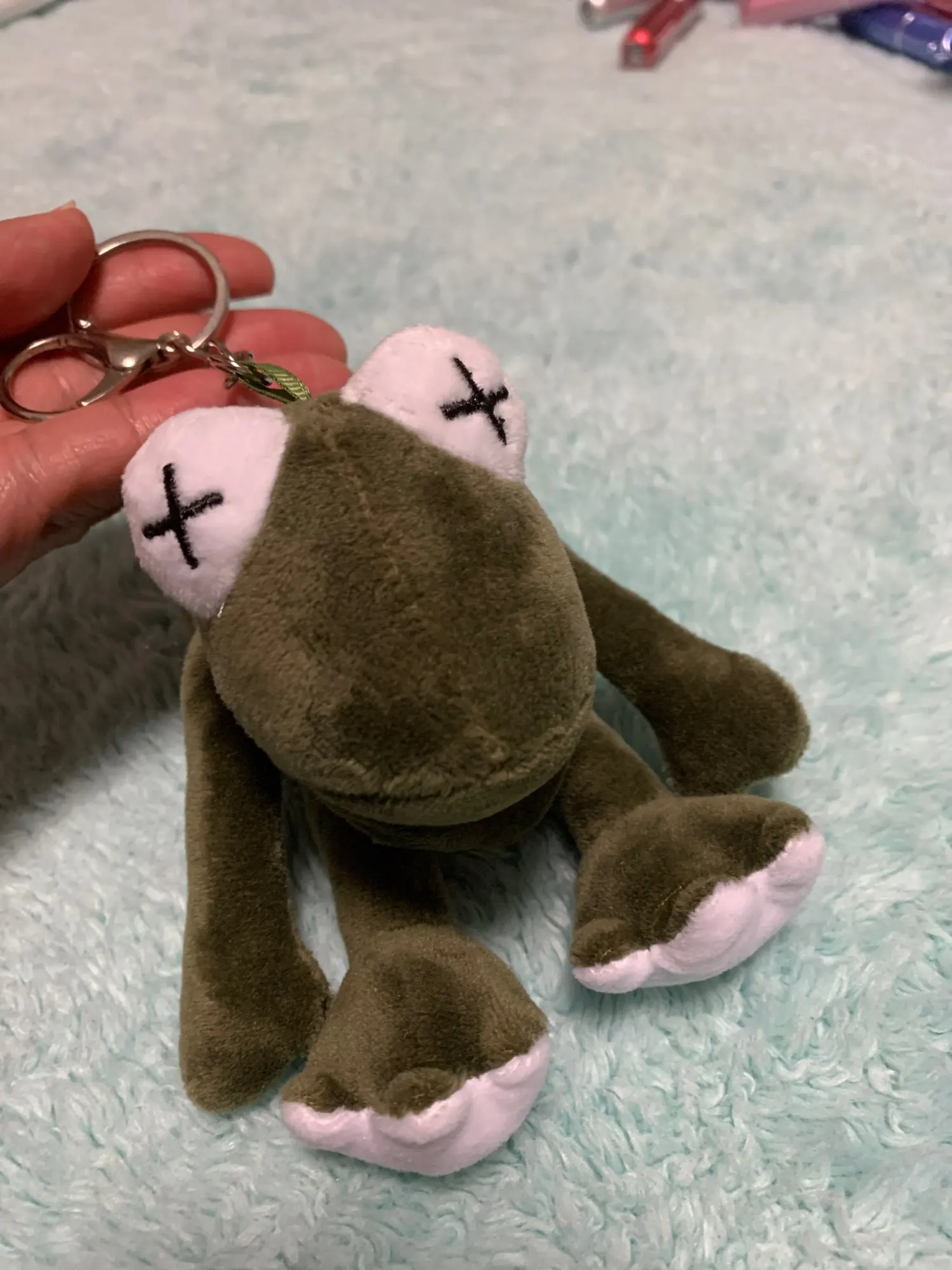 Pluff Funny Cartoon Frog Plush Keychains Rings Key Holder Porte Clef Pendant Soft Stuffed Animal TOY Kids From 0 To 3 Years Old