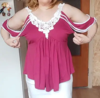 Plus Large Size Loose Blouses Women Tops Street Wear Off Shoulder Lace Tee Shirt Tunic Tops Female Clothing 3XL 4XL 5XL