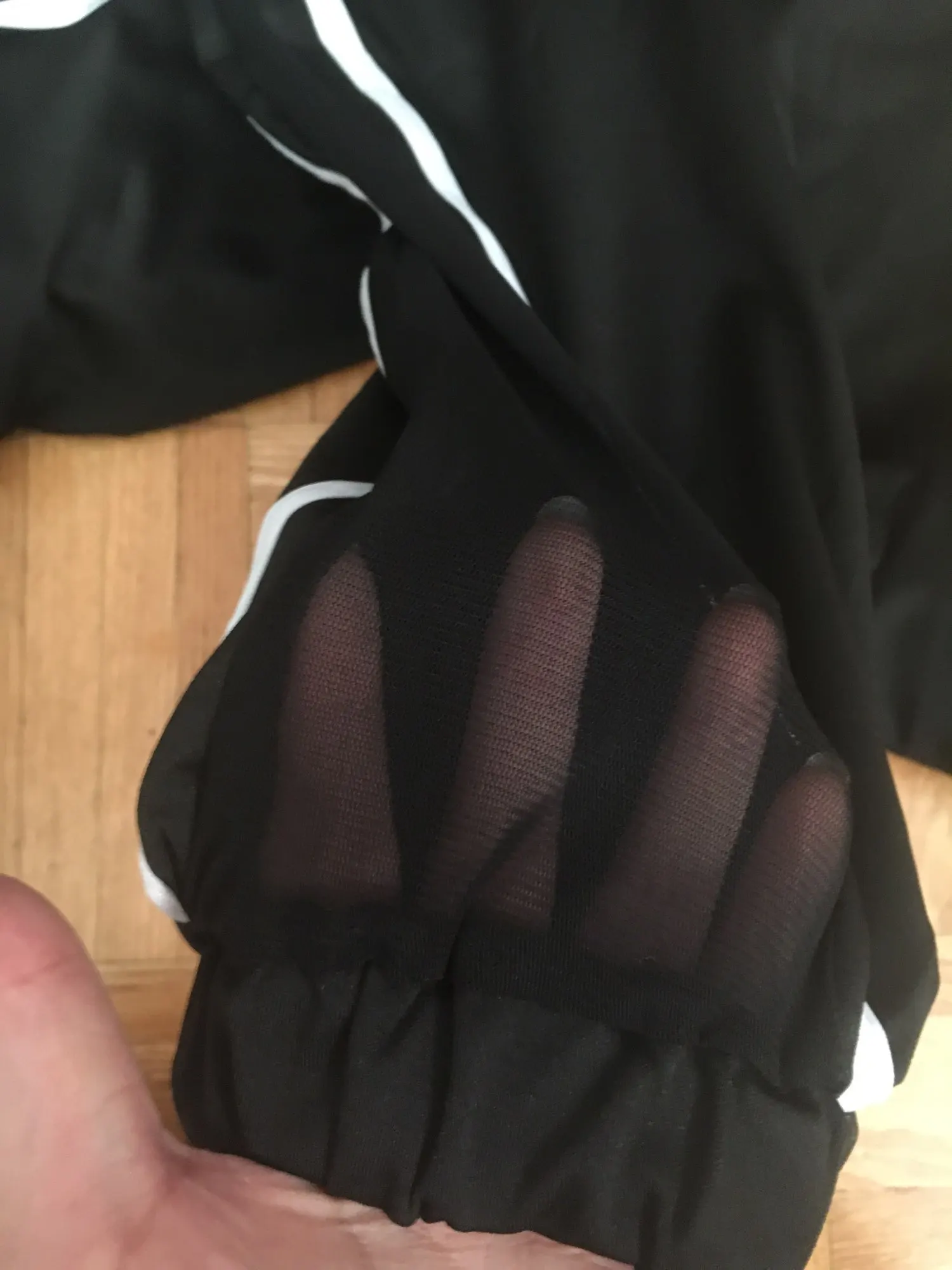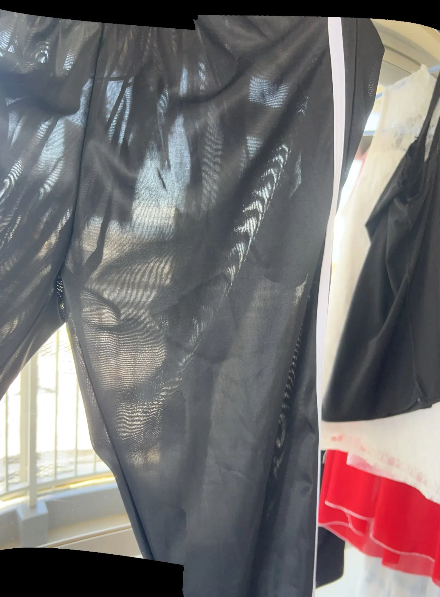 Fabric is quite thin, great for summer! Got to order large sizes as it’s small in sizing. Otherwise, just like photo. Thank you.