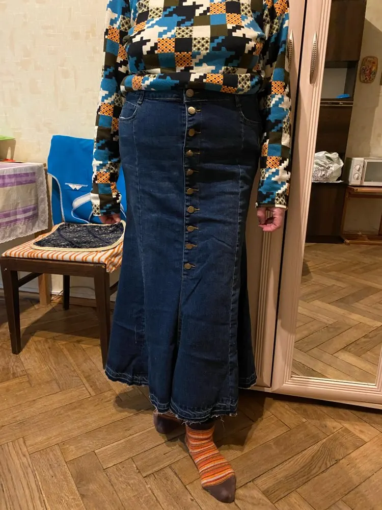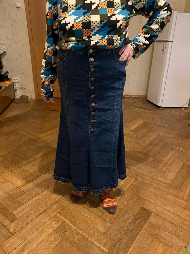 Item is as expected. I think it's better to have steam iron before wearing for making the flare shape perfectly. I took XL for hip 90cm. It makes the beautiful shape even the waist is a little loose. Buttons are a little noisy, but it's acceptable. I had a little difficulty for opening the button hole. I needed very sharp scissors. Overall I'm satisfied and recommend this!