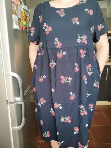 Plus Size Summer Dress Women Beach Dress 2022 Short Sleeve Cotton Dresses Loose Casual Dress Printing Summer Clothes for Women