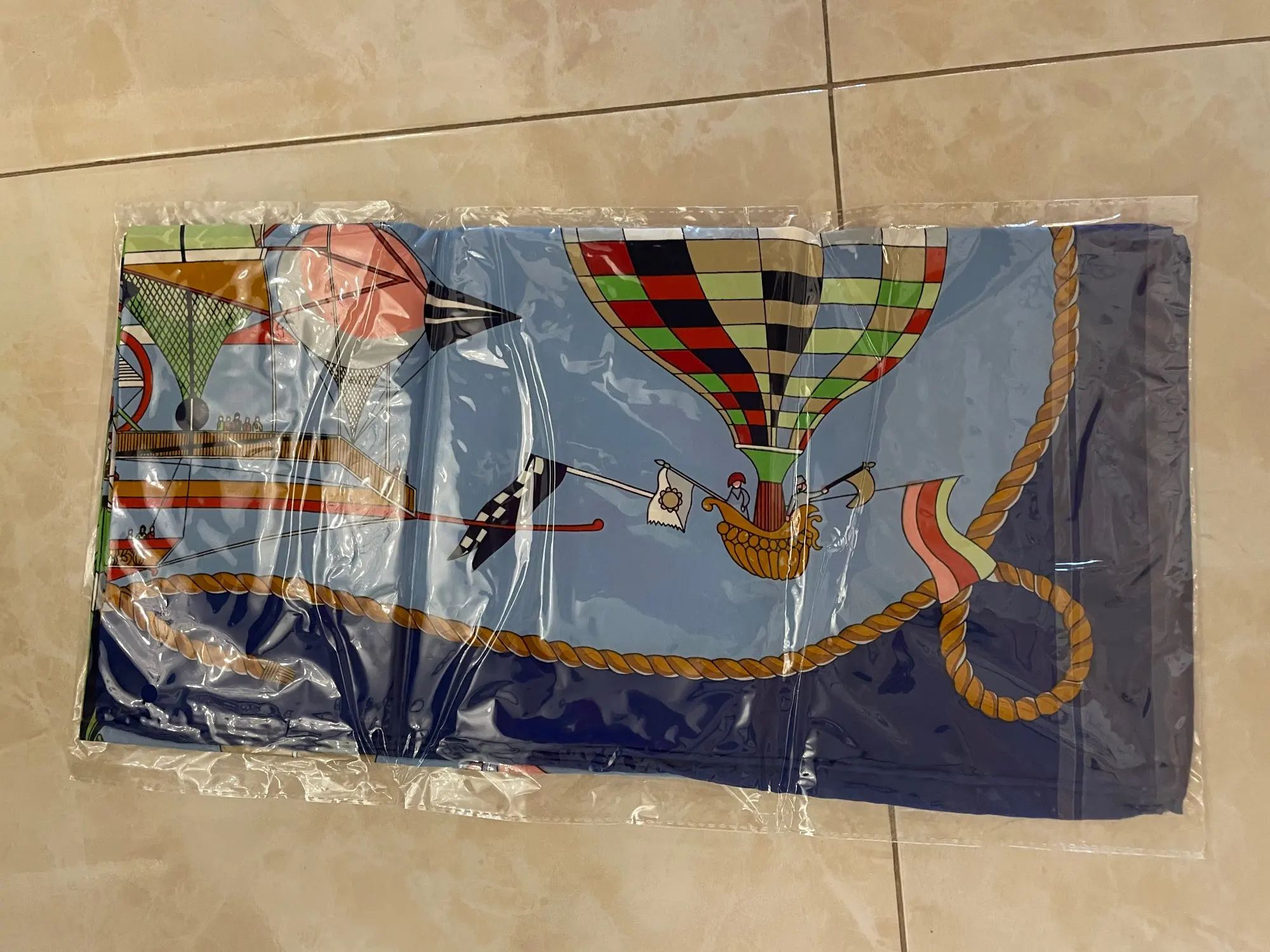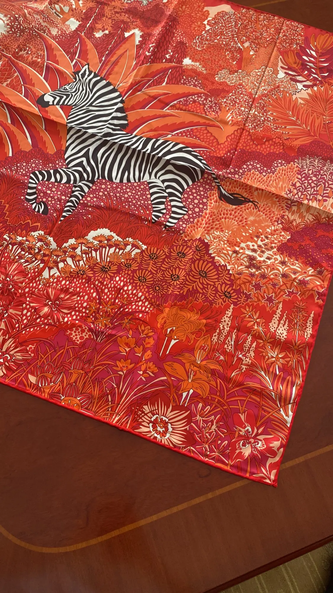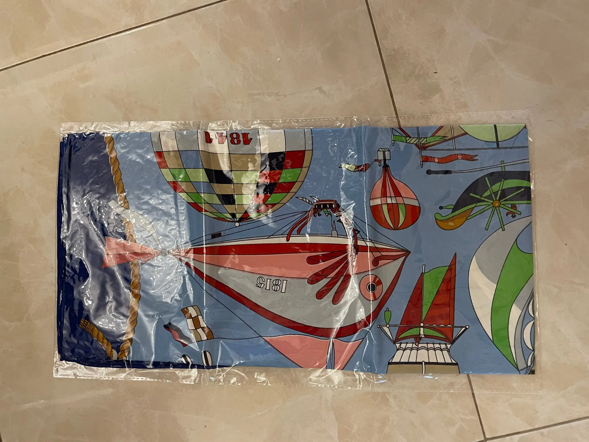 Surprisingly fast shipping to Europe. Scarf looks wonderful. I love the colors which are really saturated and the pattern. The fabric feels great, smooth how it is supposed to be. I would definitely buy again