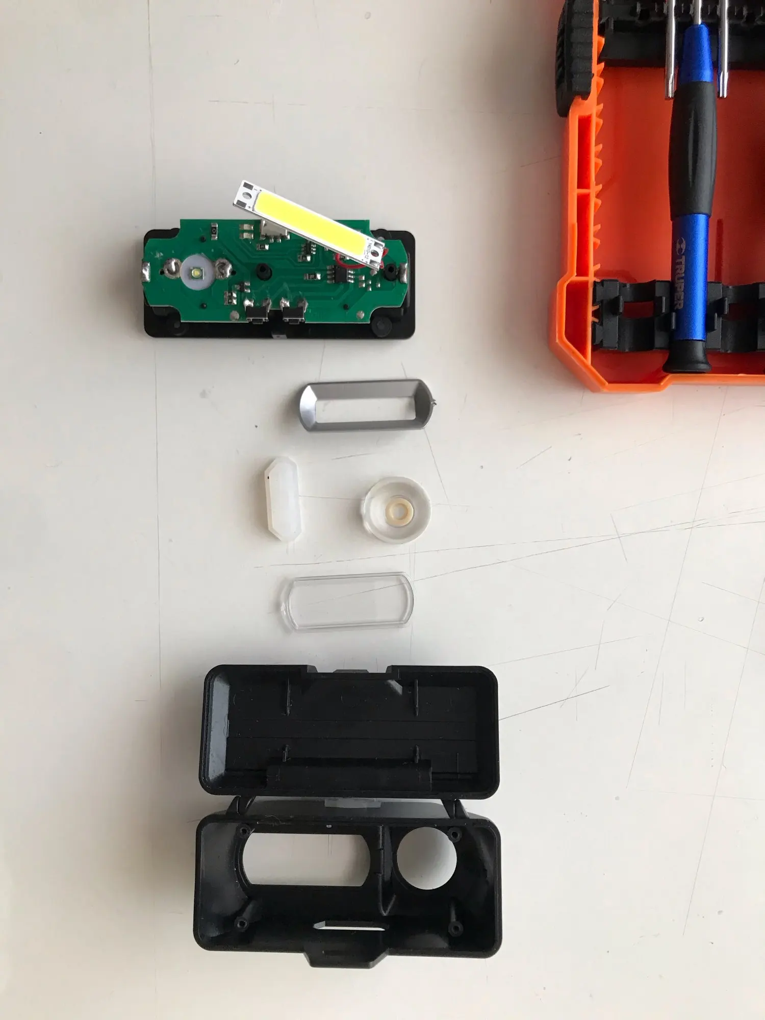 Plastic box for lamp and charger is good for travelling.