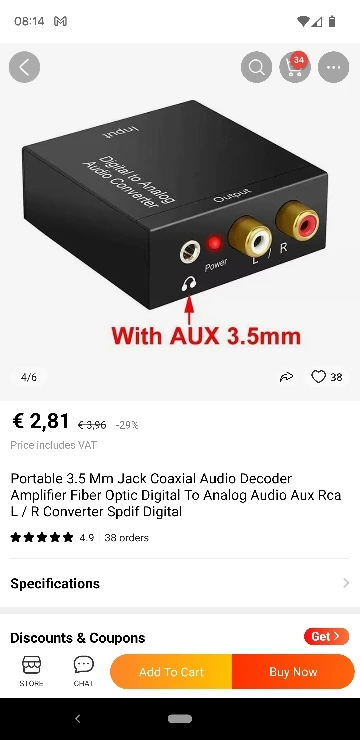 Portable 3.5 Mm Jack Coaxial Audio Decoder Amplifier Fiber Optic Digital To Analog Audio Aux Rca L / R Converter Spdif Digital