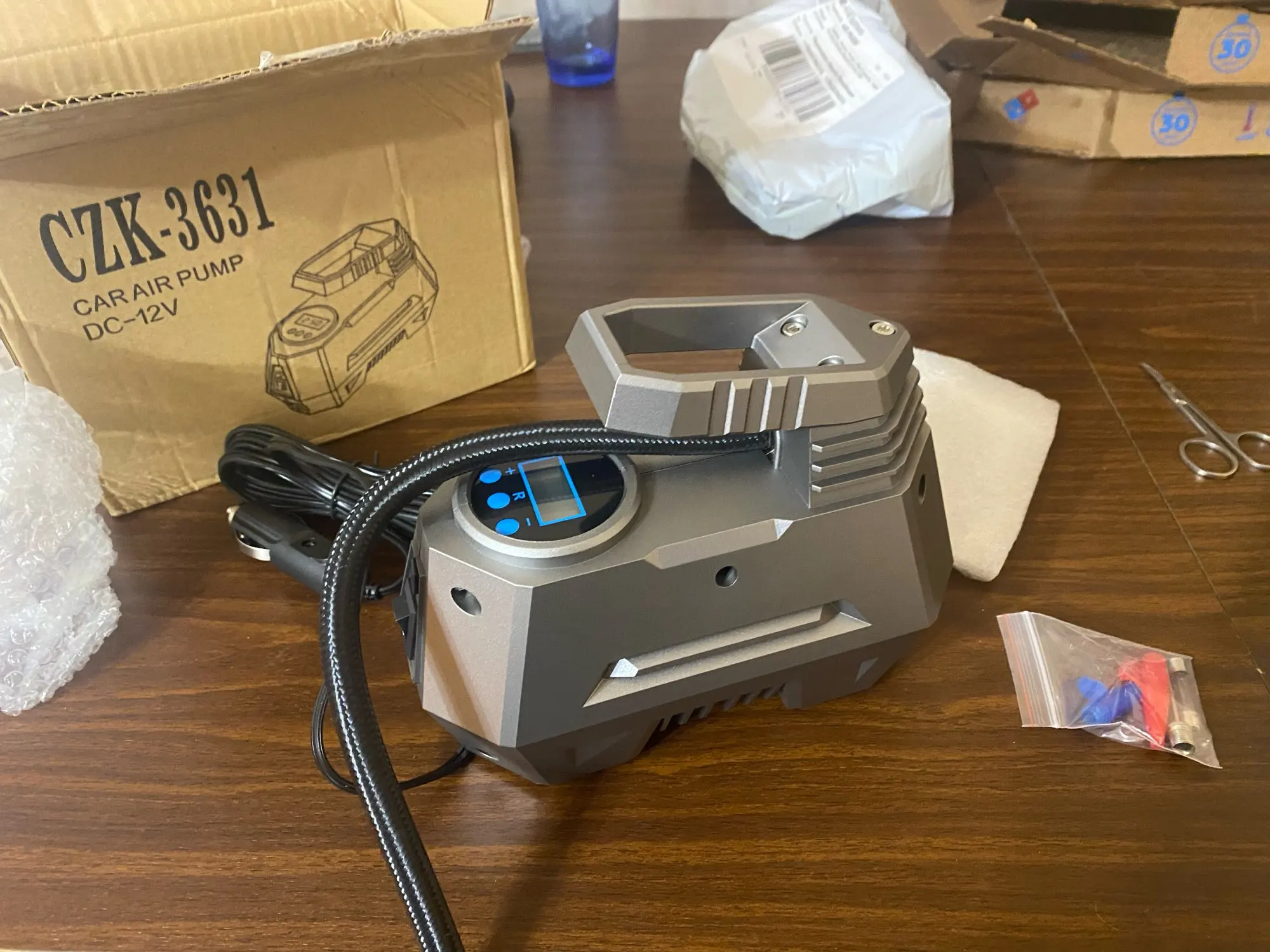 Portable Air Compressor Tire Inflator - Car Tire Pump With Digital Pressure Gauge (150 Psi 12V DC) Bright Emergency Flashlight