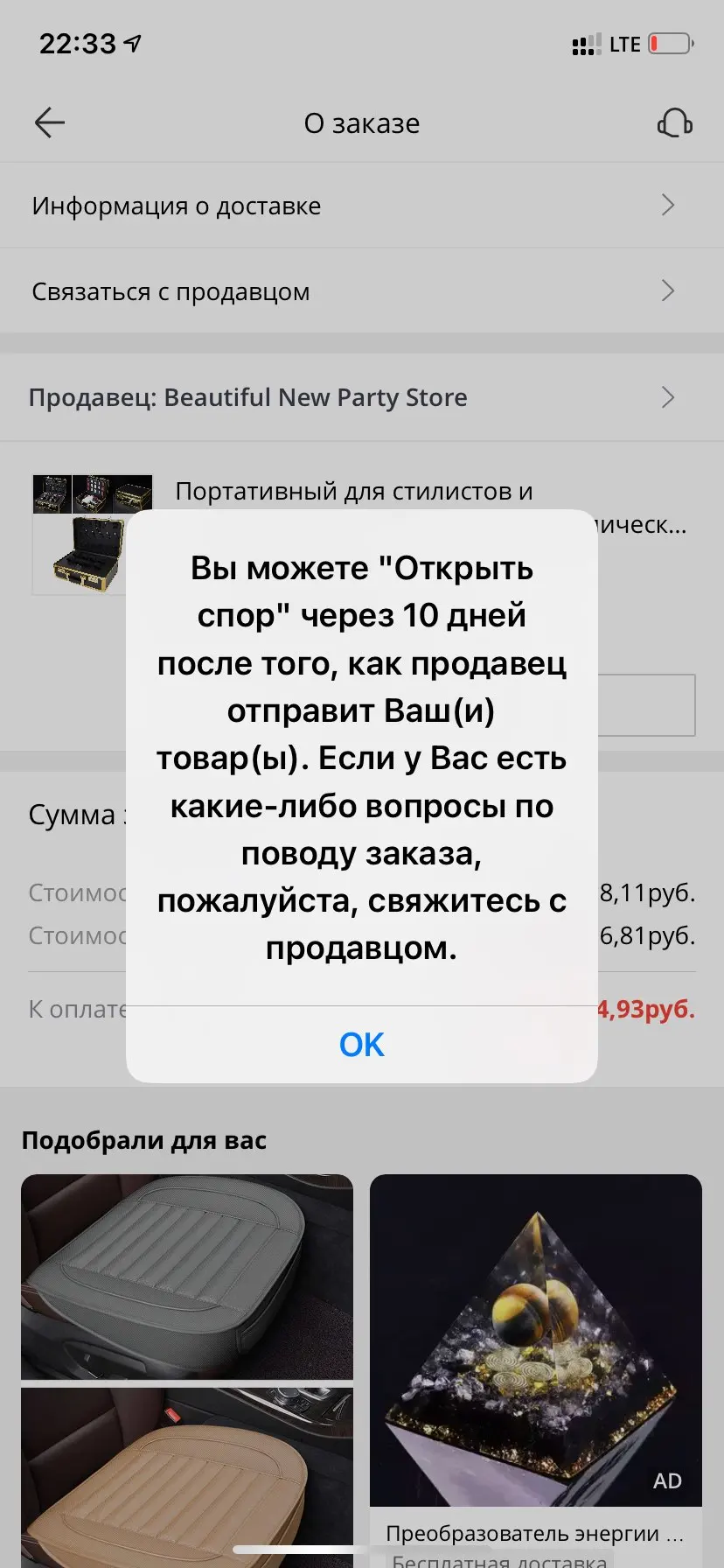 The seller has been active on the platform for more than three years.