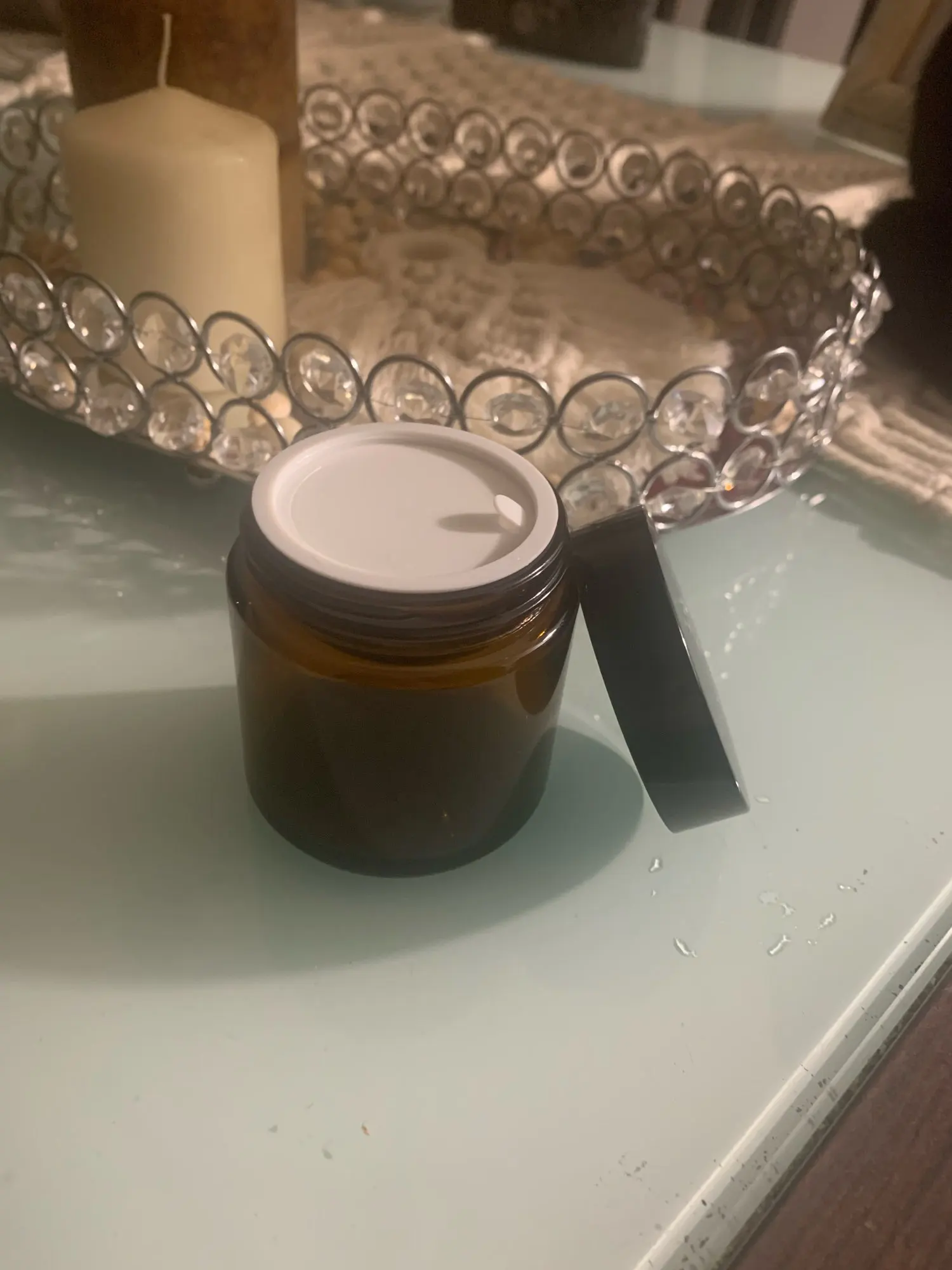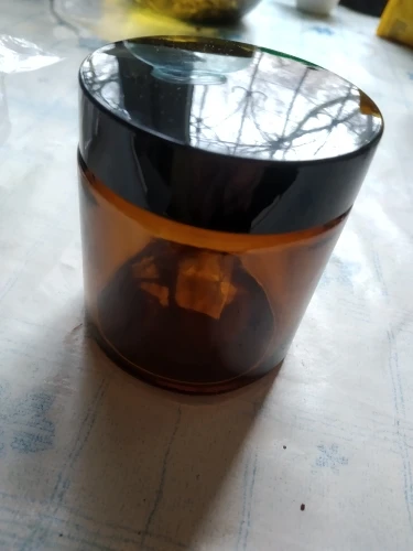 as described, the glass quality is pretty good, the lid is plastic but fits perfectly, the lid comes with a another lid that prevents the content to leak out. the shipment arrived fast and very well protected.