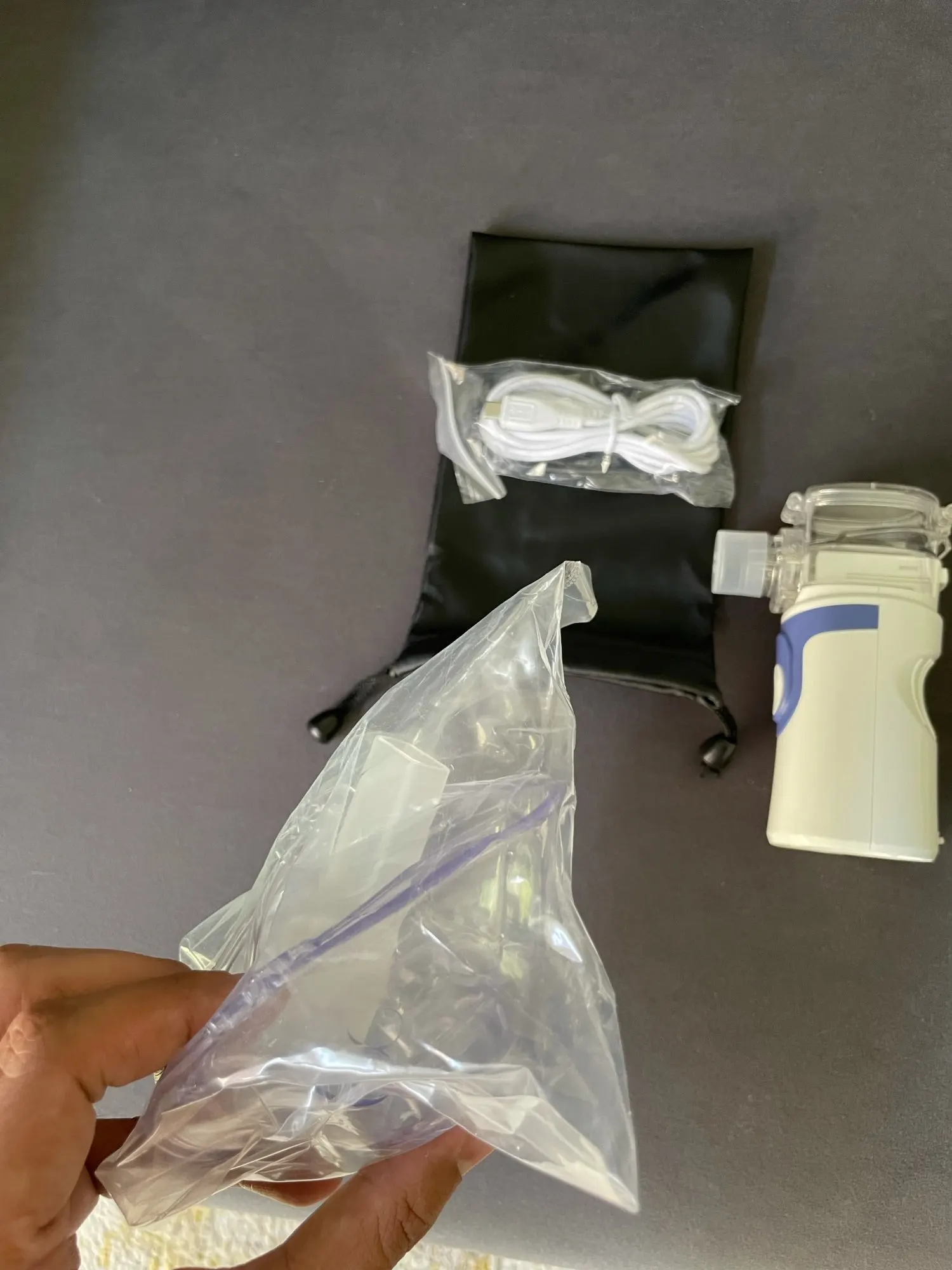 The product is amazing and perfect. The nebulizer is portable and handy. it comes with three spacer an adult and a child could use. I hereby recommend this product to everyone. I'm thrilled about the fact that it came just in time and its just as displayed on the sellers page. I have no regret buying it. If you are confuse or not sure of which Nebulizer to buy, here is right one to buy. I find its features attractive. No noise, you do not have to use electricity always, you can use battery. You can use it anywhere.